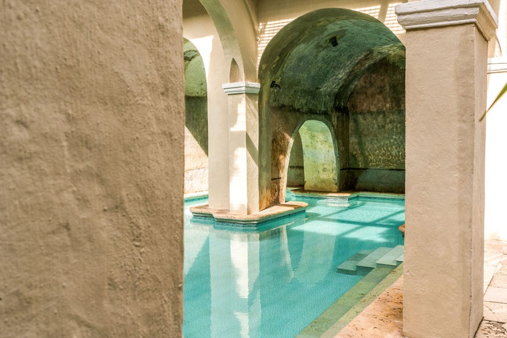 Seomra Bóveda · Ag tabhairt aghaidh ar an linn snámha choilíneach