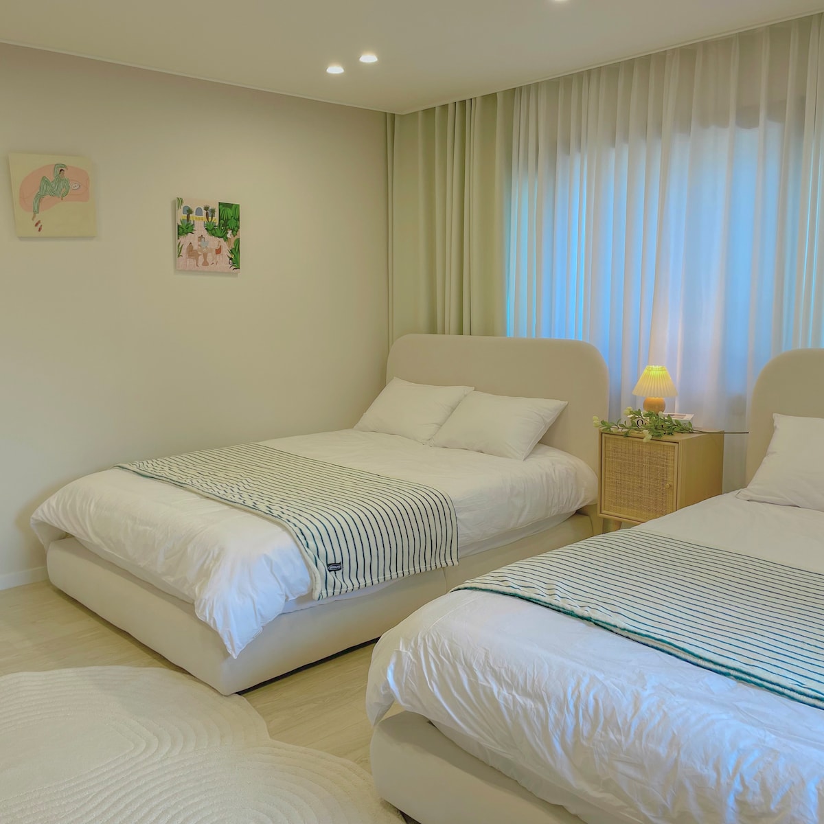 19 min walk to Haeundae Beach, in quiet hillside Haeridan-gil where Korea’s 1960s heritage meets today’s trendy cafés. A perfect spot to experience authentic Korean culture. Family-friendly Hinoki bath Single-use gardens , outside dining tables are provided. 1 Oversize King Bed+ 1 Super King Bed Quiet hillside, close to beach & restaurants Perfect base to explore Korean culture & local food Perfect for couples, families, or friends seeking culture, comfort, and relaxation near Haeundae.