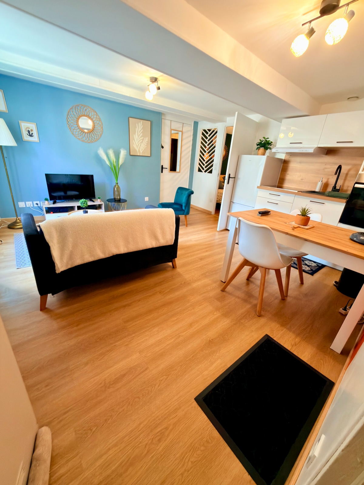 Árasán mór i gcistin itheacháin "croílár an bhaile" agus seomra suí geal ina bhfuil leaba rímhéide. Ardán beag clóis istigh. Charm na sean. Lonnaithe 2 chéim ón Jura Venice beag, séipéal coláisteach Dole, an ceantar stairiúil, an margadh agus an rothar bóthair, rochtain Commanderie de shiúl na gcos . Stáisiún traenach 10 nóiméad ar shiúl na gcos . Tá an áit chónaithe slán chun rothair a stóráil. Go leor siopaí agus bialanna ar an tsráid atá ciúin do choisithe agus páirceáil saor in aisce in aice láimhe .
