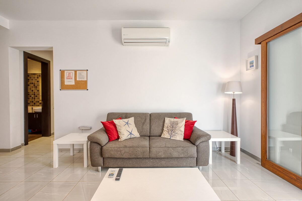 Samhlaigh na cuimhní cinn a bheidh á ndéanamh agat agus tú ag fanacht san árasán só úrnua seo atá deartha, 1 sheomra leapa lena ardán príobháideach féin agus radhairc farraige, cuain agus oileáin gan bhriseadh. Is é só an rud a gheobhaidh tú an nóiméad a rachaidh tú tríd an doras tosaigh. Tá an t - árasán feistithe le do gach riachtanas i gcuimhne. Samhlaigh do scíth a ligean ar an ardán le gloine fhuaraithe fíona ag glacadh páirte sna radhairc agus ag breathnú ar an ngrian ag dul síos thar Comino. Is féidir liom gealltanas a thabhairt cinnte, ní bheidh tú ag iarraidh a fhágáil!