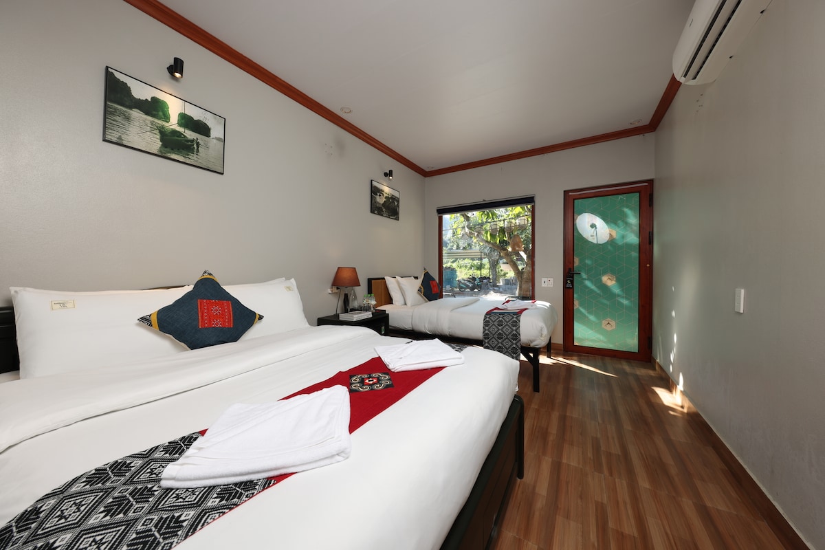 Cat Ba Serena Homestay offers a peaceful retreat in Khe Sau Village, central Cat Ba Island. Next to Hospital Cave and just 10 minutes to Cat Ba National Park and town, our property sits on 3,000 m² of lush land with a swimming pool, natural stream, and private hiking trail. The bungalow is called Superior Bungalow With Swimming Pool and Garden View in the retreat. Enjoy authentic Vietnamese dining at our restaurant, cocktails at the bar, and easy access to Lan Ha and Halong Bay excursions.