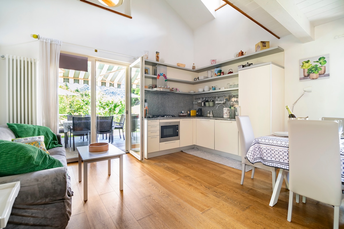 Árasán galánta nach bhfuil i lár na cathrach le radhairc iontacha ar an gcathair agus ar an loch. Cúig nóiméad sa charr ón mbóthar mór, ó lár na cathrach agus ó theorainn na hEilvéise. Siopaí, beáir, ollmhargadh agus stadanna iompair phoiblí (busanna) in aice láimhe. Ag tosú chun cuairt a thabhairt ar Villa Balbianello,Villa Carlotta agus a pháirc iontach, Tremezzo, Bellagio agus a chladaigh agus chun sráidbhailte iontacha an locha a aimsiú. Ideal chun am a chaitheamh ag scíth a ligean timpeallaithe ag an dúlra. Spás páirceála fálaithe,ardaitheoir agus Wi - Fi.