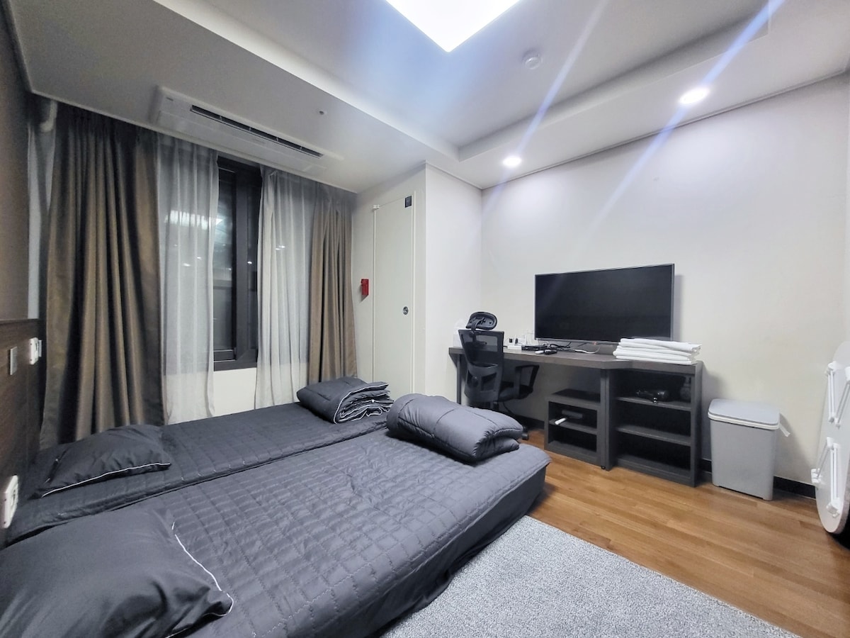 Is spás é ina bhfuil áisiúlacht iompair agus stíl ghalánta agus shlachtmhar araon i gceantar stáisiúin dhúbailte. Is spás é nach spás álainn amháin é, ach spás a bhfuil mo theaghlach agus mo mhuintir ag fanacht go cúramach. Páirc charranna Páirceáil saor in aisce ar fáil san fhoirgneamh Eile 65 - orlach 4K TV [Chromecast, Netflix, Disney Plus, YouTube Premium, Coupang Play] Wi - Fi Idirlín Ardluais Coire Ondol an Gheimhridh/Uasteorainn an tSamhraidh Aerchóiritheoir, Gaothrán - Iompar 5 nóiméad siúil ó Stáisiún Ori/7 nóiméad siúil ó Stáisiún Migeum/10 soicind siúil ó stad bus cathrach Stad Bus Limisín Aerfoirt 5 nóiméad de shiúl na gcos, 2 -30 nóiméad trí eatramh seolta - Saoráidí Nua Siopaí áise agus bialanna, caiféanna bácúis agus caiféanna éagsúla ar an gcéad urlár den fhoirgneamh. Homeplus (CGV) siúlóid 2 nóiméad, Hanaro Mart 3 nóiméad ar shiúl na gcos Siopa Roinne Shinsegae (CGV), E - Mart 15 nóiméad ar shiúl na gcos *** BÍ cinnte *** Páirtí X, Cuireadh Acquaintance X, Tobac X (lena n - áirítear toitíní leictreonacha), Torann tar éis 11pm X