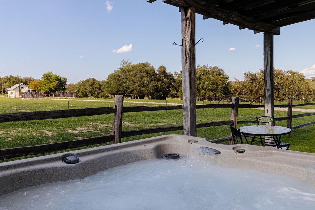 Lonnaithe i bhfoisceacht 4 mhíle den chonair fíona 290, tá an teachín tuaithe dhá sheomra leapa seo iontach chun éalú ó shaol na cathrach. Tá an teach suite ar rainse oibre 300+ acra, le rochtain ar Abhainn Pedernales. Tá leaba bhanríona ar mhéid na seomraí codlata le línéadach só agus seomra folctha ina bhfuil tobán bolgánach seaimpéin agus cithfholcadán siúil isteach. Tá an tobán te ar an bpóirse príobháideach iontach chun do scíth a ligean tar éis lá fada siopadóireachta na Príomhshráide nó blaiseadh fíona. Tar a fheiceáil cén fáth a bhfuil muid ag glaoch Monarc Ranch ár píosa beag na bhflaitheas.