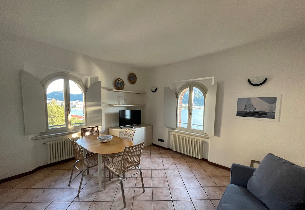 Tá radharc iontach ag an díonteach seo agus na fuinneoga ag breathnú amach ar an loch, díreach os comhair Villa Pliniana. Tá an t - árasán mar chuid de shean - villa ó dheireadh an 800, athchóirithe. An - oiriúnach le haghaidh do scíth a ligean, ag éisteacht le fuaim na dtonnta sa loch, ag dul i léig an teach. Tá sé suite i lár shráidbhaile tipiciúil Carate Urio, os comhair an tsiopa caife, na hinfhaighteachta, an dá shiopa grósaera agus an stad bus C10 agus C20. tá páirceáil phoiblí os comhair bhealach isteach an tí