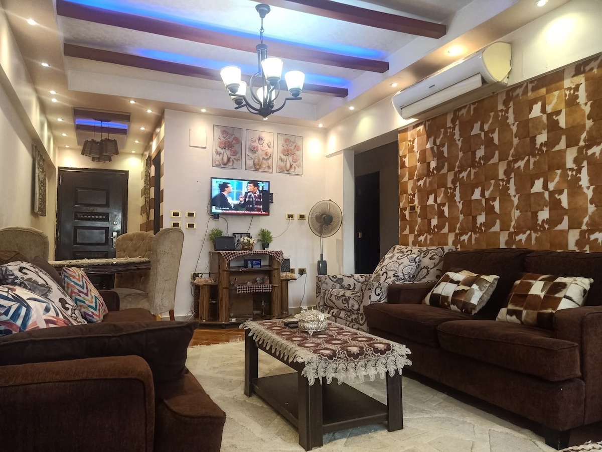 Enjoy a stylish two-bedroom apartment on the 8th floor with a direct view of the main street in the heart of Nasr City. Steps away from Abbas El Akkad Street and Koshary El Tahrir, and only 10 minutes from Cairo International Airport. Ideal for tourists, families, and business travelers seeking comfort and prime location