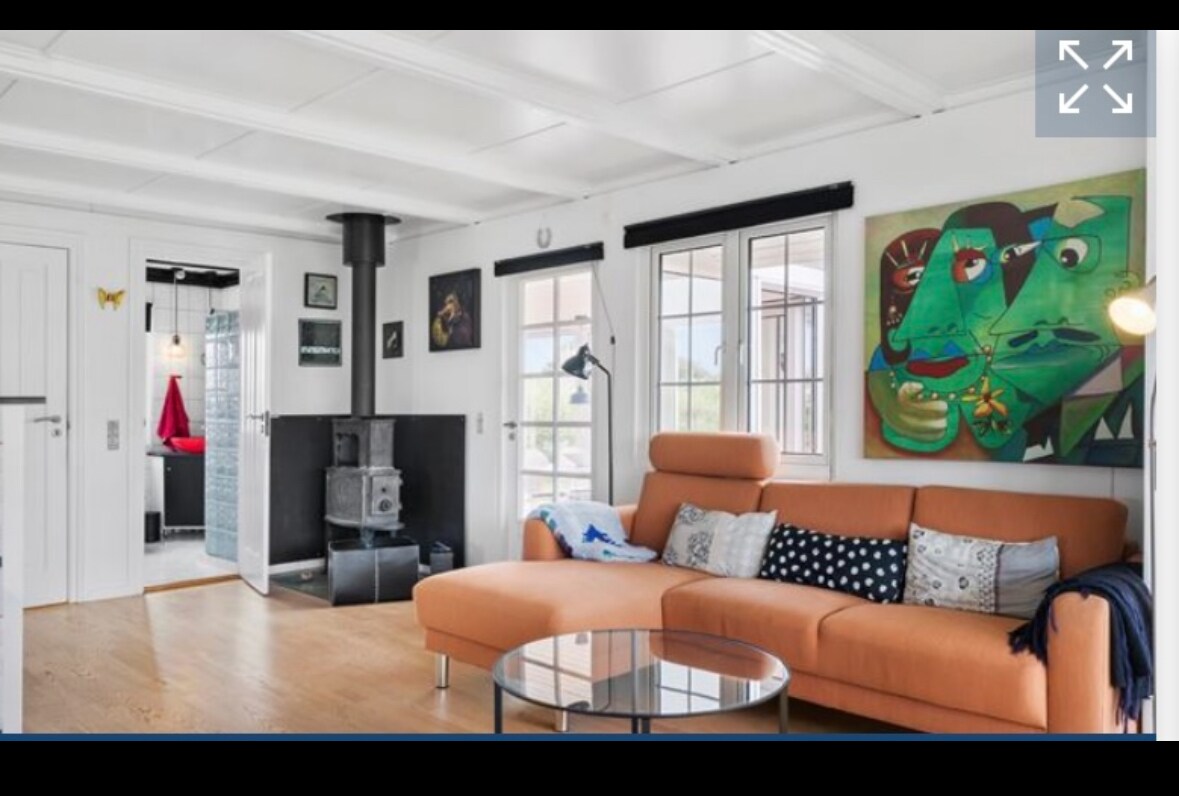 Teachín atá deartha ag ailtire 150 méadar ón trá sa Gjellerodde álainn. Tá gach rud a theastaíonn uait sa teachín chun saoire iontach a bheith agat. Tá an teach samhraidh achar gearr síos go Trá Gjellerodde, áit ar féidir leat snámh agus portáin a ghabháil. Laistigh d'achar siúil gheobhaidh tú clós súgartha álainn freisin inar féidir leis an duine is óige súgradh, agus seachas sin an bhialann áitiúil Café Odden, áit ar féidir leat uachtar reoite blasta nó béile maith a fháil. Tá an suíomh oiriúnach freisin chun iniúchadh a dhéanamh ar an gcuid eile d'Iarthar na hIútlainne