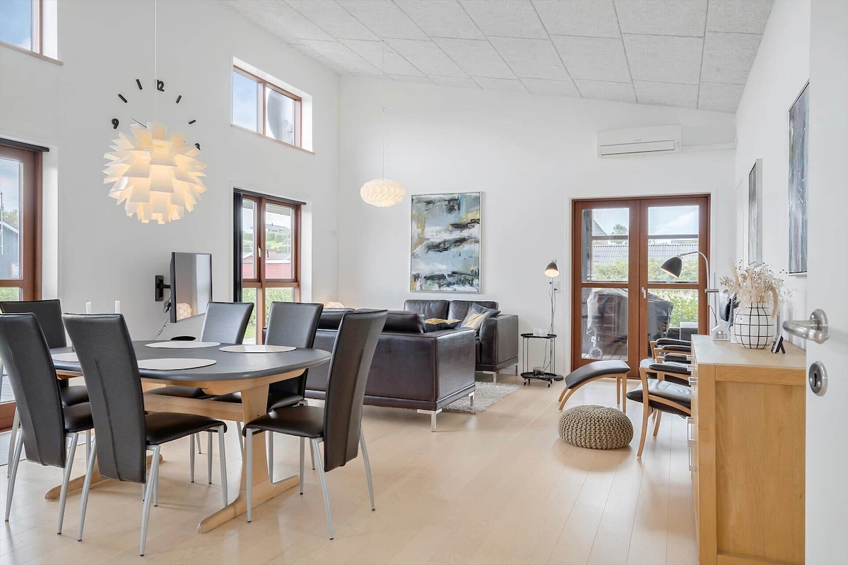Bíodh am iontach agat leis an teaghlach ar fad sa teach galánta seo. Tá spás ann don teaghlach ar fad, gar don dúlra álainn agus cúpla méadar ón fjord, áit ar féidir leat snámh a ghlacadh ón lamairne snámha. Tá clós súgartha deas dúlra timpeall an chúinne freisin, chomh maith le gar do chaife/both agus bialann. Beagán ciliméadar ó chathair Lemvig. Tá 3 sheomra sa teach, ceann le leaba dhúbailte, ceann le leaba trí cheathrú agus ceann le dhá leaba shingil. Is féidir leaba shingil amháin a chur ar chapall leapa do pháistí níos lú. Tá tomhaltas san áireamh i bpraghas an fhanachta.