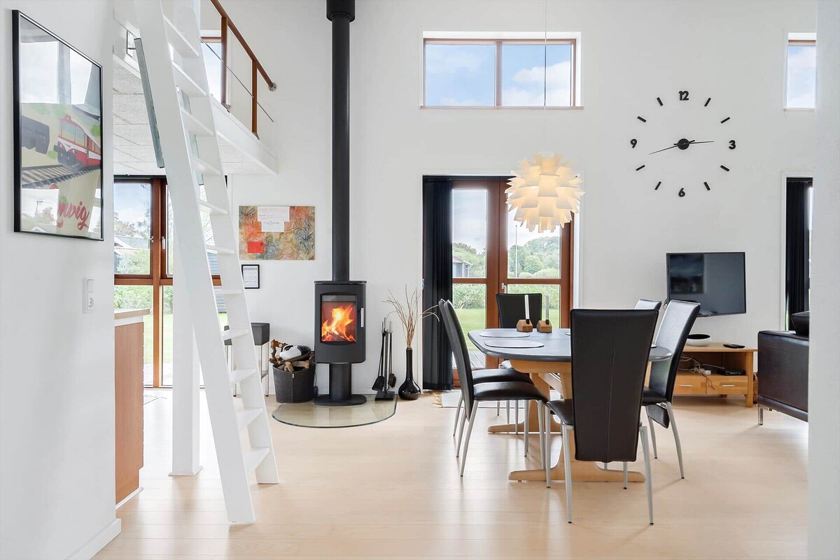 Tá an teach athchóirithe as an nua le rochtain ar a ardán féin agus tá an radharc is áille ann de thírdhreach an - speisialta. Ar oícheanta réaltaí, ón leaba is féidir leat an spéir réaltach a bhlaiseadh trí fhuinneoga an stiúideo sa díon. De ló, is féidir leat taitneamh a bhaint as an solas speisialta a chaitheann an suíomh gar don fharraige agus an fjord faoin tuath. Ar thaobh cnoic taobh thiar den teach tá an radharc is fearr den Limfjord agus den talamh taobh thiar de. Níl sé i bhfad go dtí an fjord, áit a bhfuil dálaí maithe snámha agus an turas ann an - álainn.