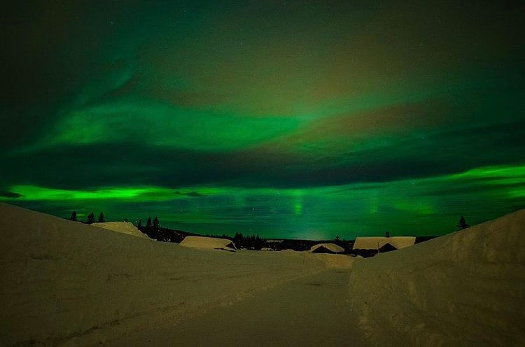 Cábán cosy offgrid go domhain san fhoraois Nordach