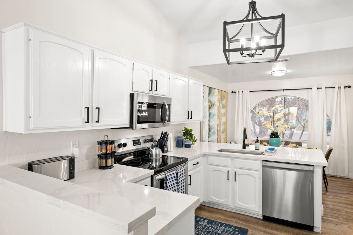 Lig do scíth agus lig do scíth sa Glendale galánta 3 sheomra leapa seo, lóistín saoire ar cíos! Caith do laethanta ag cur na gréine ar maos ag an linn snámha phríobháideach, comhlánaigh le fonsa cispheile nó bailigh le chéile ar an bpaitió le haghaidh bia agus cluichí ping pong nó foosball, Tá an tearmann aon stóir seo foirfe do theaghlaigh nó do ghrúpaí, ina bhfuil cistin oscailte agus áit chónaithe. Le rochtain éasca ar nithe is díol spéise, siopadóireacht agus bia áitiúil. Cibé an bhfuil tú sa bhaile mór le haghaidh cluiche, saoire ghearr, nó díreach chun do scíth a ligean i solas na gréine in Arizona,