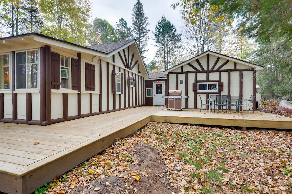 Suite go hálainn ar thailte an Ionaid Fionnachtana i seastán péine atá ag breathnú amach ar Statehouse Lake, is é an teach álainn seo an saoire fhoirfe Northwoods! Níl ach siúlóid ghearr amach an doras tosaigh, gheobhaidh tú duga príobháideach a thugann rochtain duit ar Statehouse Lake, cadhcanna agus curacha atá ar fáil duit le húsáid, agus rochtain éasca siúlóide ar Rest Lake. Déan iniúchadh ar chóras conaire 12 mhíle an Ionaid Fionnachtana nó téigh ag iascaireacht. Tá rochtain ar an gconair shneachta ar fáil trí chabhsa an Ionaid Fionnachtana.