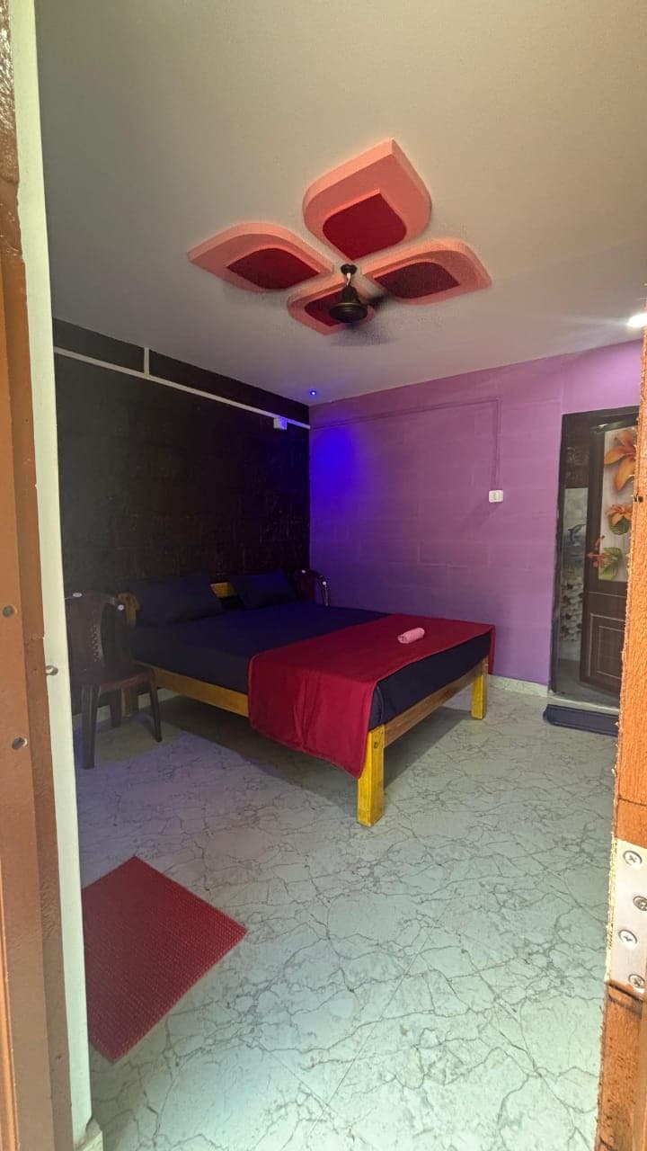 Ár bhfanacht tí timpeallaithe ag méithe de ghairdín glas. Is féidir leis freastal ar Bheirt aoi. Is féidir leat taitneamh a bhaint as ár n - áit i lár an dúlra. Tá sé foirfe do lánúineacha, do theaghlach beag agus do chairde. Tá sé in aice le trá Kudle in aice le páirceáil íoctha Shiva Prasad Kudle Gokarna. Níl ach achar 2 nóiméad siúil ón áit pháirceála go dtí ár bhfanacht. Má tá tú ag lorg fanacht simplí, síochánta barántúil agus tearmann cairdiúil is é seo an áit is fearr duit. coinnigh glaineacht, le do thoil.