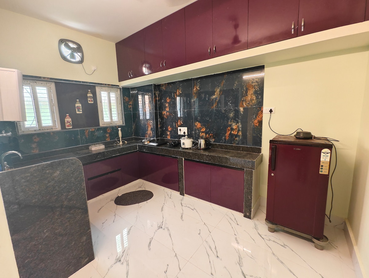 Fáilte go dtí ár n - árasán galánta 2 BHK, foirfe do thréimhsí fanachta teaghlaigh! Bain sult as dhá leaba rí chompordacha IKEA agus leaba thoilg de mhéid banríona i seomraí lán - aerchóirithe, lena n - áirítear seomra suí fairsing. Tá an chistin veigeatórach oscailte íon feistithe go hiomlán do do riachtanais. Nílimid ach 600m ar shiúl ó thrá na Brataí Goirme agus 1.5 km ó Theampall Sri Jagannath, a thairgeann príobháideacht agus compord iontach do thréimhsí fanachta fada. Lonnaithe ar bhóithre leathana a bhfuil dea - bhail orthu, Faigh blaiseadh den mheascán foirfe den scíth agus den áisiúlacht!