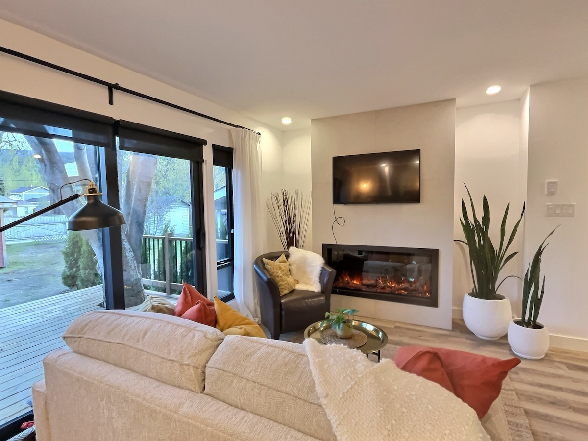 Déan iniúchadh ar an áisiúlacht agus ar an tsuaimhneas i dtearmann 3 - bdrm nua - aimseartha nuathógtha, gan ach tiomáint 5 nóiméad ó lár Golden. Laistigh d'achar siúil ón Golden Skybridge, tá radharc iontach sléibhe ar fáil sa teach seo ina bhfuil cistin lánfheistithe chun áthas na cócaireachta a bhlaiseadh. Glac le scíth cois an teallaigh, áit a n - athraíonn tolg fairsing ina leaba phluise. Cuir tú féin sa tobán te príobháideach le radhairc iontacha, faigh blaiseadh d'oícheanta suaimhneacha inár leapacha sómasacha. Tá an saoire ghearr ag fanacht leat!