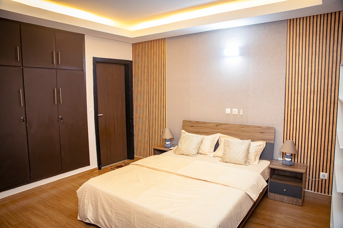 Fan i gcroílár Abidjan san árasán iontach nua, suaimhneach, croíúil seo atá maisithe go galánta i ndathanna nádúrtha agus ina bhfuil atmaisféar nua-aimseartha a chuireann ar do shuaimhneas. Tá an t-árasán fairsing seo, a bhfuil a phríobháideacht iomlán cosanta, suite ar an 2ú hurlár in áit chónaithe chiúin shlán, atá foirfe le haghaidh fanachta gairmiúil nó saoire shuaimhnis. Tá an lóistín suite 25 nóiméad ón Plateau, 35 nóiméad ón aerfort agus 10 nóiméad ó Abidjan Mall. In aice le go leor saoráidí.