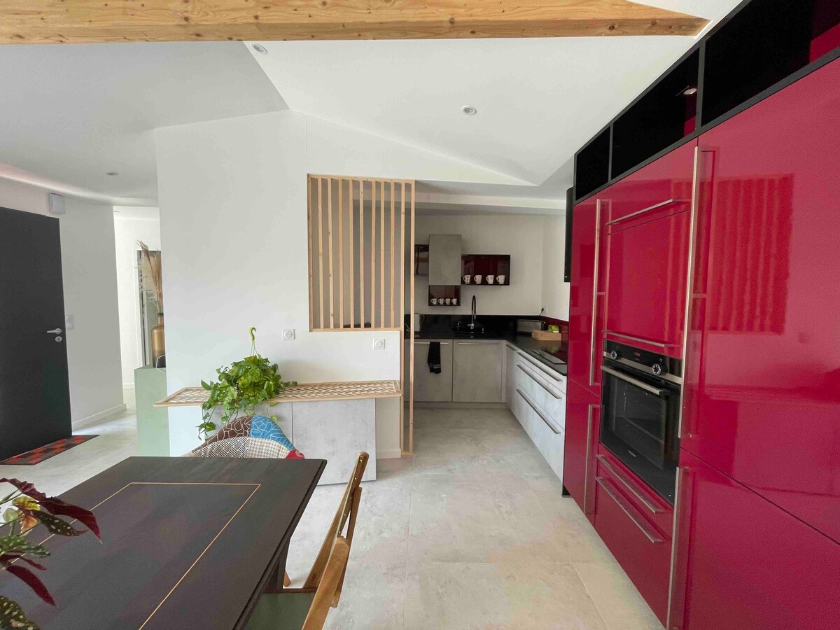 Sraith álainn de 120m2 neamhspleách ar phríomhtheach na n - óstach,agus taitneamh á bhaint as an spás lasmuigh. Bain sult as gan teorainn. - den Jacuzzi 7 suíochán le 96 scaird, - den chainteoir móibíleach Bluetooth - Sauna infridhearg Spás siléir den scoth. - Cathaoir maisíochta - Seomra scíthe le tábla suathaireachta soláthraí seirbhíse áitiúil Jessica Cúram, suathaireachtaí,ar an láthair ná bíodh drogall ort teagmháil a dhéanamh léi le haghaidh do sheisiún folláine. Siúlóid 7 nóiméad ó stáisiún Clisson, 17minby ter nó traein tram ó Nantes.