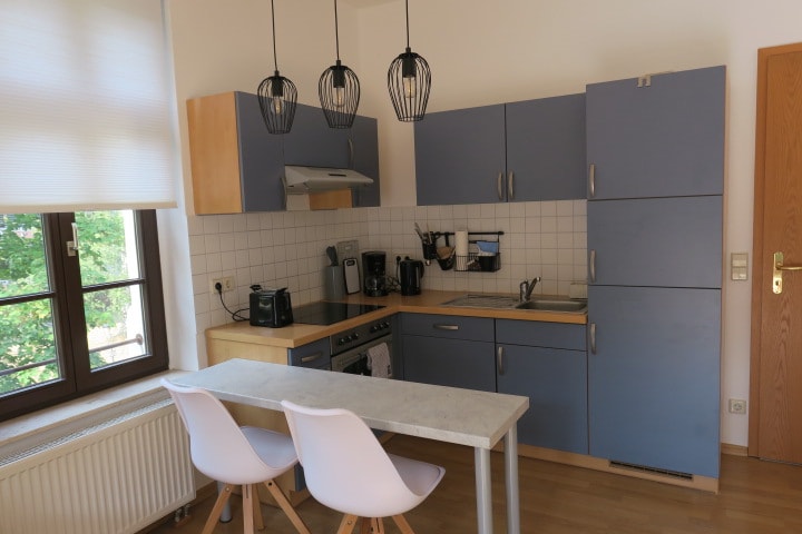Tá an áit ghalánta seo le fanacht foirfe do lánúineacha agus do theaghlaigh. Tá sé inrochtana, ciúin, le páirceáil saor in aisce díreach os comhair na réadmhaoine. Tá téamh faoi urlár ann freisin, leaba earraigh bosca, teallach, teilifís chliste, Wi - Fi, cosaint feithidí ar an bhfuinneog agus cistin nach bhfágann rud ar bith le bheith inmhianaithe. Tá an ceantar oiriúnach don fhánaíocht agus don rothaíocht. Is féidir príomhchathair chultúrtha Chemnitz, caisleáin Augustusburg agus Lichtenwalde a bhaint amach i gcarr i gceann thart ar 10 nóiméad.