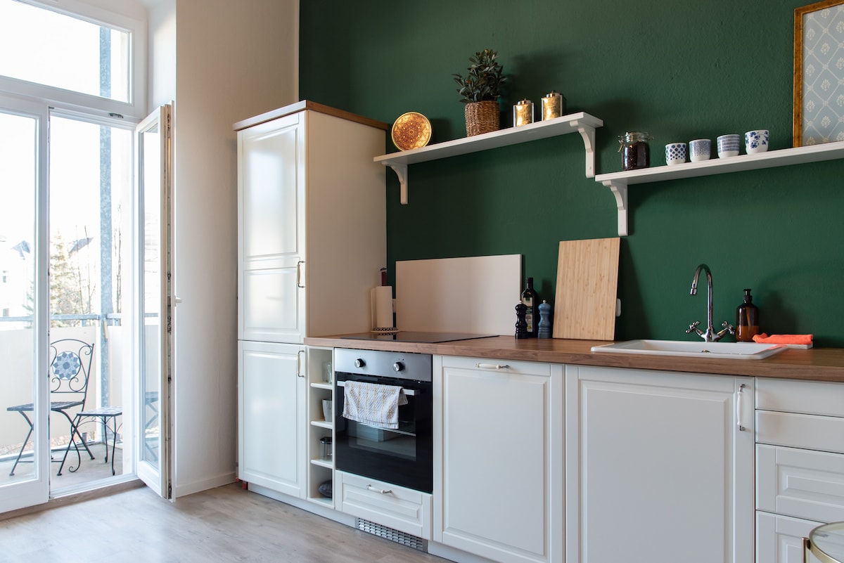 Tá an t - árasán 2 sheomra (50m²) athchóirithe go hiomlán, nua - chóirithe agus tá sé suite ar an gcéad urlár de villa Art Nouveau, i gceantar álainn Kassberg. Tá áiseanna siopadóireachta agus an seastán laistigh sa gharchomharsanacht agus is féidir teacht orthu de shiúl na gcos i gceann 10 nóiméad. Naisc bus agus traenach an - mhaith. - BALCÓIN deas mór - seomra folctha le tub agus cith - stóráil rothar ar féidir a ghlasáil san íoslach - leaba thoilg nua (áitíocht 3 dhuine ar a mhéad)