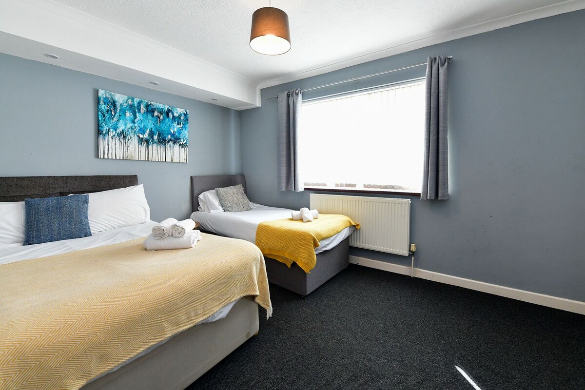 Sáróstach - Féin urláir uachtair príobháideach/árasán - cistin/tolglann - ensuite - seomra leapa/tolglann - M/tonn, Cuisneoir/reoiteoir. Roghanna 1 seomra leapa eile & seomra folctha tiomnaithe ar an 1ú hurlár le haghaidh úsáid an ghrúpa áirithinte amháin. Níl ach grúpa áirithinte amháin in aghaidh na cuairte, mura bhfuil na seomraí breise ag teastáil tá siad fós folamh. Is féidir an chistin/an áit itheacháin ar an mbunurlár, an tolglann, an grianán agus an gairdín a bheith ar fáil. WI - FI snáithín, SkyQ, Netflix. gach míbhuntáiste mod Páirceáil ar an tiomántán príobháideach lasmuigh