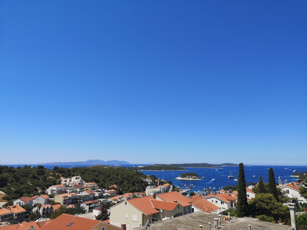 Apartman Bella Vista se nalazi na jugoistocnoj strani Hvara, u neposrednoj blizini mora. Najbliza plaza, Pokonji dol, nalazi se na udaljenosti 8 minuta hoda. Odmah ispred kuce su uređene stijene gdje je omoguceno plivanje i suncanje. Terasa je okrenuta prema moru s prelijepim pogledom na more i otoke. Potpuno opremljena kuhinja, prostrana natkrivena terasa i mirno područje izvrsno su riješenje za jedinstven i savršen odmor. Od centra grada udaljen 20 minuta hoda. Besplatan WiFi.
