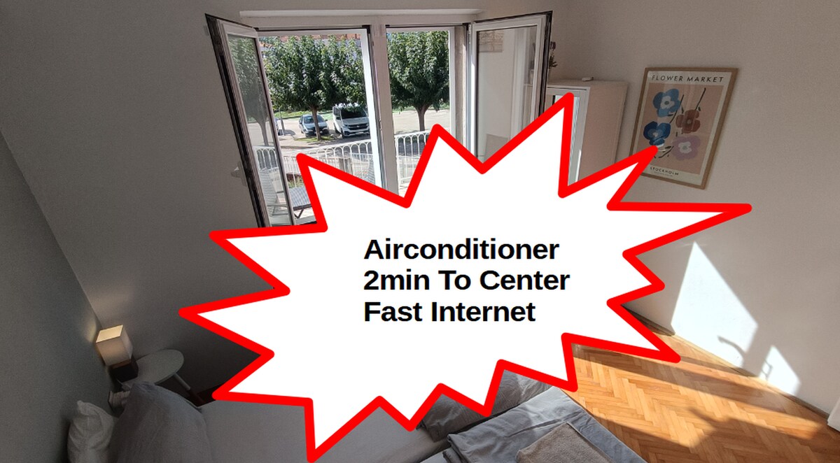 Is éard atá san árasán 60 m 2 sheomra leapa ina bhfuil leaba mhór dhúbailte, seomra folctha, seomra suí fairsing ina bhfuil cistin, anteroom agus balcóin. Tá an balla iomlán ó dheas os comhair na farraige, ar gloine ghloine ghloine ghloine é agus mar sin tá an spás geal, agus le balcóin a dhéanann sé áit. Tá an t - árasán suite ar an tríú hurlár den teach, an - ghar do lár na cathrach (spaisteoireacht taitneamhach 5 nóiméad ag an bhfarraige), agus tá balcóin ann le radharc oscailte ar an bhfarraige agus ar na hoileáin, ós rud é go bhfuil an teach suite sa chéad sraith cois farraige.