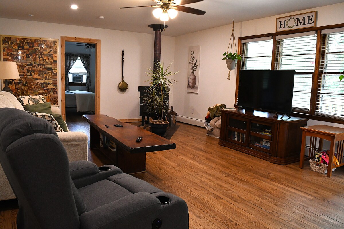 Tar i ngrá le Michiana Shores, geallaimid go dtaitneoidh an tsíocháin agus an áit chiúin leat. Tá ár dteachín gleoite suite siar, neadaithe i measc crann péine agus soilse twinkle. Roast marshmallows agus tú i do shuí timpeall na tine le 6 chathaoir adirondack nua - aimseartha, téigh ag spaisteoireacht chuig an trá, téigh ag marcaíocht ar rothair, beárbaiciú, féachaint ar luí na gréine ar feadh tiomáint cois locha. Imir leadóg nó picil ag an bpáirc áitiúil. Siúlóid 10 nóiméad go dtí an trá. I bhfad ar shiúl go leor chun scíth a ligean ach gar go leor do Buffalo nua, do Ché Union nó Long Beach