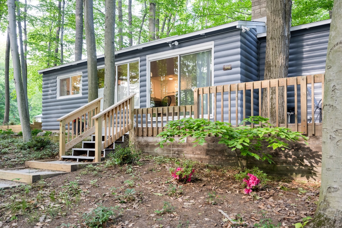 Lig do scíth ag an gcábán spraíúil seo atá oiriúnach do theaghlaigh i bpobal trá Glenn Shores. Rinneadh athchóiriú grámhar ar an teach in 2021, lena n - áirítear seomra folctha, cistin agus cithfholcadán úrnua lasmuigh. Lonnaithe cothrom ó Downtown South Haven agus Saugatuck, ag tairiscint neart nithe áitiúla is díol spéise do theaghlaigh le hiniúchadh a dhéanamh orthu. Neadaithe ar acra de réadmhaoin chúlráideach, is é an cábán seo an áit fhoirfe chun do scíth a ligean agus taitneamh a bhaint as gach rud atá le tairiscint ag Southwest Michigan.