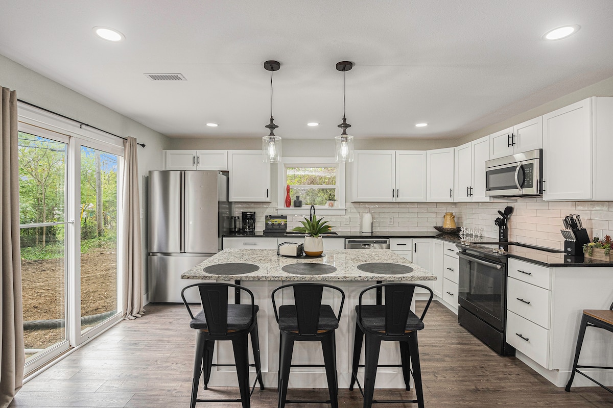 Just steps off Downtown Historic Liberty Square, this updated 1890 home offers guests an upscale luxury experience. Be pampered in the comfortable master suite & enjoy a spa-like experience w/ large clawfoot tub, Carrera Marble shower. Chef’s kitchen includes many amenities. Enjoy meals at the large quartz island. Large private deck. Chaise couch in the living room. Home is divided into complete and private apartments. Each guest has their own entrance and no shared spaces. Wine included!