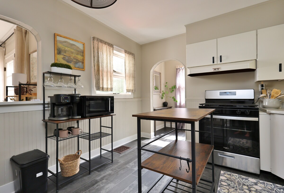 Díreach trasna na sráide ó Indiana Wesleyan University (IWU) tá teach beag glas gleoite a bhfuil súil againn go gcuirfidh sé fanacht compordach, gar, agus álainn ar fáil duit in Marion. Tá 2 sheomra leapa, 1.5 seomra folctha sa teach seo, agus cúinne ar an urlár uachtair ina bhfuil dhá leaba dhá dhuine. I measc na saoráidí tá: - Roku Smart TV - WI - FI - Caife - Meaisín níocháin & triomadóir - Cainteoir Bluetooth Táimid in aice láimhe, mar sin ná bíodh drogall ort teagmháil a dhéanamh linn má theastaíonn cabhair uait.
