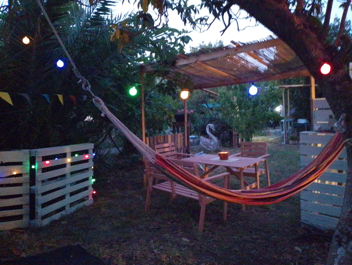 Bain sult as fuaimeanna an dúlra trí fhanacht sa spás uathúil seo. Lonnaithe i measc plandaí agus crainn, ag tairiscint tearmann uathúil le haghaidh scíthe agus suaimhnis. Tairgeann na pubaill sa ghairdín cóiríocht mhalartach le tochtanna den scoth, agus tá an ghlaineacht dochloíte. folcadán príobháideach wc, seomra níocháin cithfholcadáin lasmuigh agus ardán comhroinnte ina bhfuil radhairc iontacha spéirlíne. Tá an fharraige an - ghar, oiriúnach don tumadóireacht agus don scíth a ligean. Sa ghairdín tá ámóga beárbaiciú, srl.