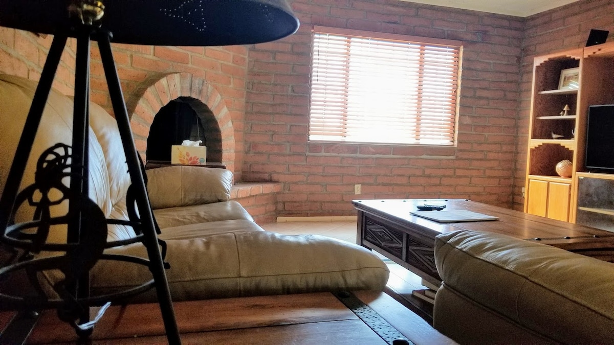 “Is tearmann fásaigh é an áit seo i ndáiríre ." Dhá sheomra leapa, cistin iomlán, casita - suite, ámóg, poll dóiteáin, iad go léir ceangailte isteach in acra plush d'fhásach dúchasach, amach ó bhóthar salachair ciúin, feabhsaithe, 10 nóiméad ó Pháirc Náisiúnta Saguaro agus 20 nóiméad ó NW Tucson . Stíl Mheicsiceach, tearmann tuathúil. An áit fhoirfe do lánúineacha, do theaghlaigh bheaga nó do sholónna. Gateway to Saguaro National Park, Desert Museum, Ironwood Ntl Monument, Tucson Mtn Park. Ar fáil go míosúil i mí Aibreáin - Deireadh Fómhair, 2 aoi $ 1,350/mí (+airbnb,cánacha)
