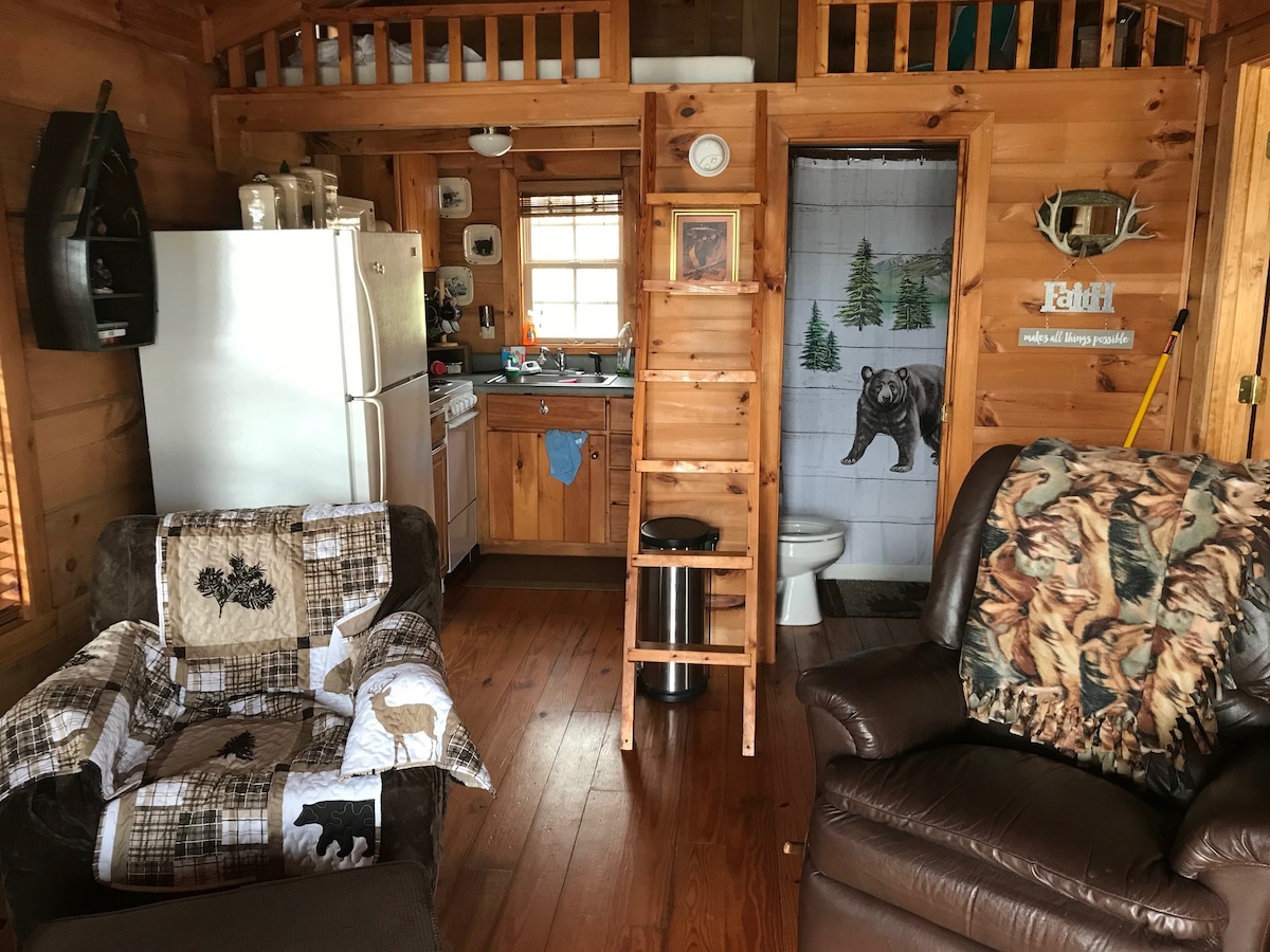 Is é ár dteach beag crainn sa choill an áit iontach chun díphlugáil, scíth a ligean agus páirt a ghlacadh sa dúlra. Teachín cluthar, tíriúil seomra amháin. Bain sult as do chaife maidine ar an mbalcóin ag breathnú amach ar Creek foirceannadh agus ar dhroichead clúdaithe. Bain sult as na deochanna is fearr leat cois tine ar na hiarnónta nó na tráthnónta fuar sin. Saoire ghearr rómánsúil iontach do lánúineacha. Tá seomraí folctha/ cithfholcadán i bhfoirgneamh ar leith, gan ach céimeanna ar shiúl. 15/17 nóim go Greer, Landrum le haghaidh siopadóireachta, bialanna. Tá Aerfort GSP 23 nóiméad ar shiúl.
