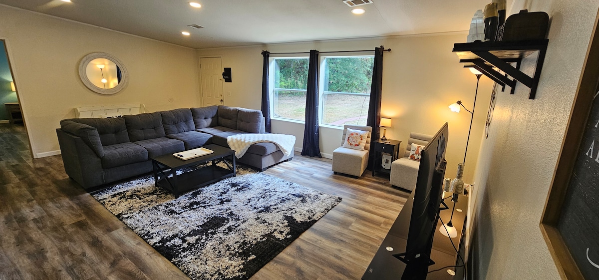 Cibé an bhfuil tú ag lorg éalú tíre ciúin nó an bhfuil imeacht agat ag A&M, ná breathnaigh níos faide ná Cowabunga Cottage! Suite níos lú ná 30 nóiméad ó Kyle Field, Stáisiún Choláiste Bryan ar rainse mór eallaigh atá ag obair, tá gach rud atá á lorg agat agus i bhfad níos mó sa teachín seo atá á lorg agat agus i bhfad níos mó. Paitió cóisire lasmuigh lasta, poll dóiteáin, gríoscán gáis, diosca, poll coirnéil, carraeirí agus luascán póirse. Le gach fanacht tagann beart dea - mhéine d'adhmad tine agus féiríní chun na ba a thabhairt de láimh.