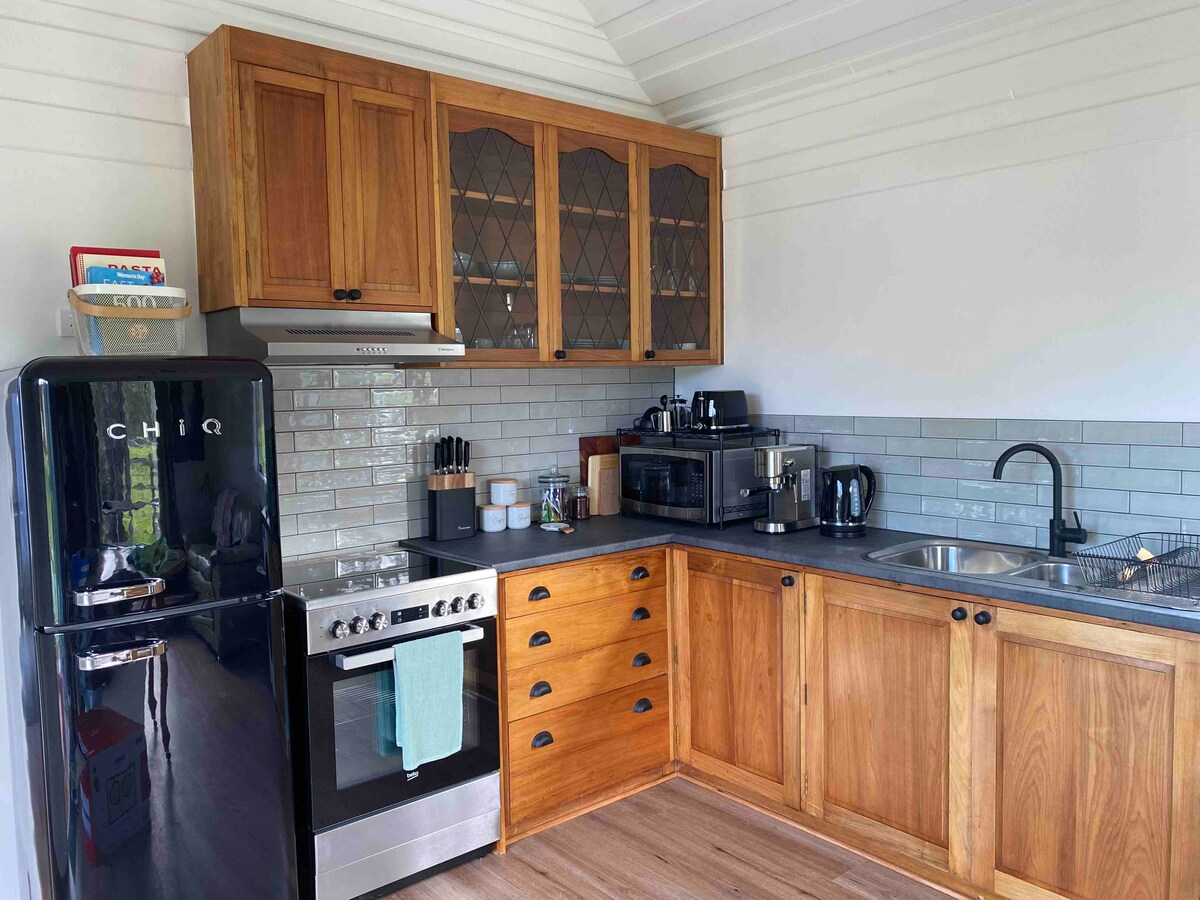 Ag féachaint amach ar Abhainn álainn kanamaluka/Tamar, is tearmann compordach, lán le solas agus galánta é ár stiúideo plean oscailte. Tá ár réadmhaoin lasmuigh den ghreille; faoi thiomáint na gréine agus timpeallaithe ag ceann de na conairí deireanacha de thalamh coille nádúrtha gar do Launceston. Nílimid ach 10 nóiméad ón gcathair, áit a dtosaíonn Bealach Fíona íocónach Tamar Valley agus cuireann an Tamar Island Wetlands uathúil ceann de na nithe is mó a bhfuil tóir orthu ar fáil i dTuaisceart na Tasmáine.