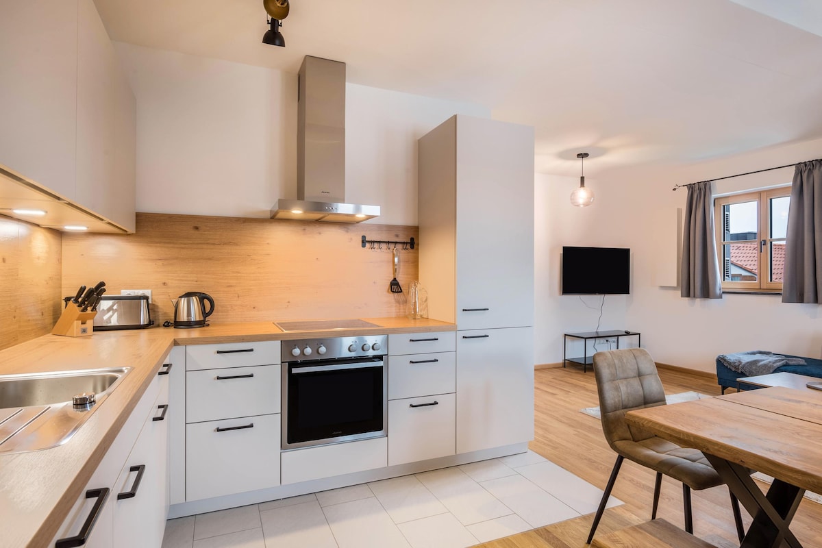 📍“Árasán coincréite galánta ar imeall ciúin München. Dearadh íostach, cistin lánfheistithe, agus seomra folctha nua - aimseartha le cithfholcadán. Foirfe le haghaidh saoire ghearr shuaimhneach nó turas galánta cathrach !” 📍Tá meaisín caife Nespresso (lena n - áirítear rogha pillíní), sneaiceanna, sláinteachas agus táirgí cithfholcadáin (lena n - áirítear galtán agus triomadóir gruaige) feistithe ar Airbnb i gcónaí ionas gur féidir leat taisteal le bagáiste éadrom. 30nóiméad le Traein go Lár na Cathrach ó Dhoras go Doras