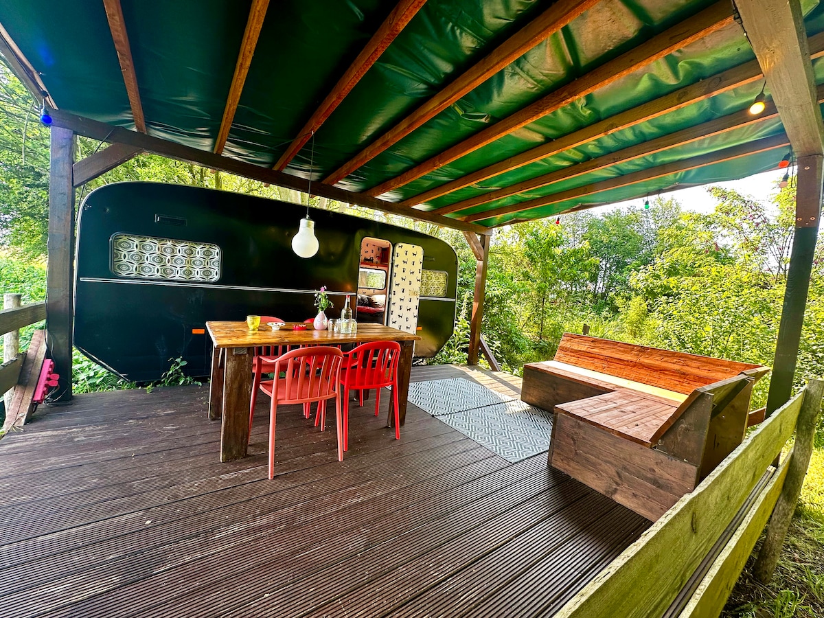 Tá an carr salúin teolaí seo sa chlós idir na capaill, na sicíní agus na géanna. Bain sult as simplíocht na háite deasa seo ina bhfuil teallach, do chistin féin, leaba bhosca agus cithfholcadán agus leithreas 'lasmuigh' (féach na grianghraif). Is féidir an carr a théamh le sorn millíní agus feistithe le gach compord le haghaidh fanacht suaimhneach. Tá leaba déanta, tuáillí glana, línéadach cistine agus glanadh deiridh san áireamh sa phraghas.