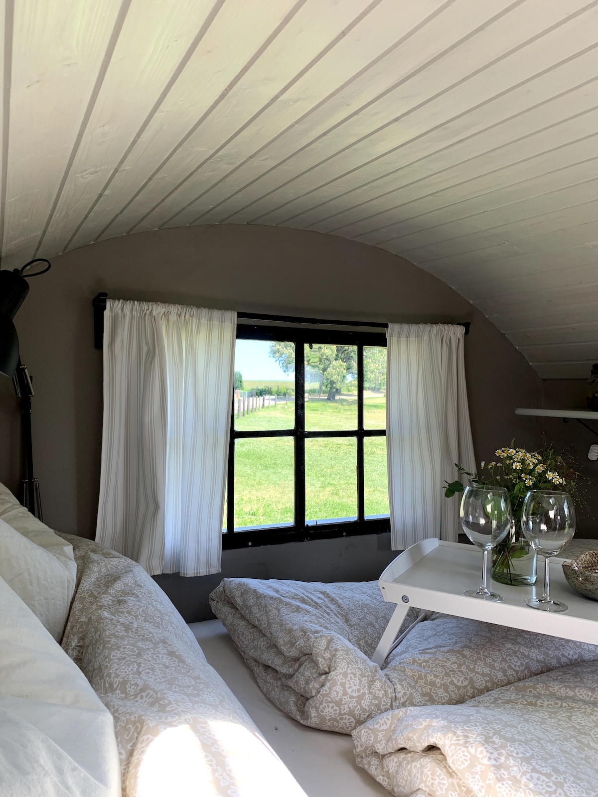 Ar chnoc, atá neadaithe ag seanchrainn, seasann 1 as 3 theachín neamhghnácha, gach ceann acu le 2 áit chodlata. In aon aimsir (seachas sa gheimhreadh), is féidir leis an mbothán daoine a bhfuil dúil acu i gcampáil, rothaithe nó cuairteoirí gearrthéarmacha a thairiscint le fanacht thar oíche mar rogha eile ar an bpuball. Níl ann ach mála codlata agus tuáille sa bhagáiste. Is éard atá sa chompord ná díon os cionn do chinn, áit chodlata, tine champa dheas agus cithfholcadán te lasmuigh le leithreas ar leith.