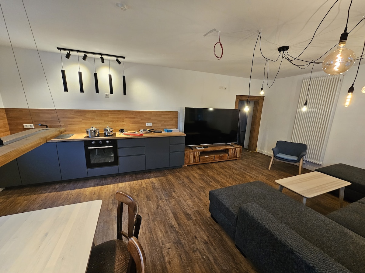 Tá an t - árasán nua - aimseartha 55 méadar cearnach suite i gceantar Delecke le radhairc ó gach seomra. Tá an t - árasán suite ar bhunurlár an tí agus tá áit mhór chónaithe ann ina bhfuil oileán cócaireachta agus bia comhtháite agus spás oibre. Tá miasniteoir, hob ionduchtaithe, micreathonnán, cuisneoir taobh le taobh agus oigheann feistithe go hiomlán sa chistin. Is féidir rothair a pháirceáil sa seid trealaimh.