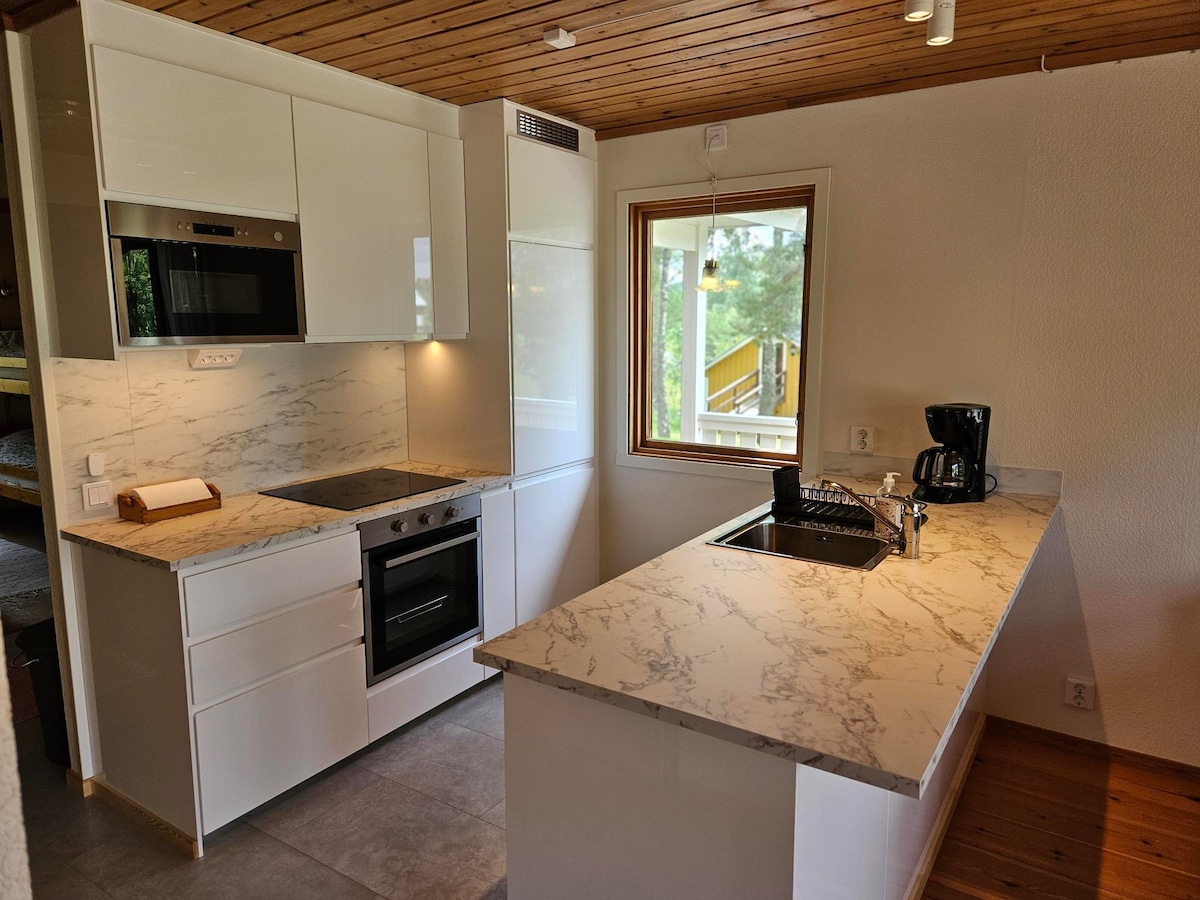 Anseo tá cónaí ort in árasán fairsing (75 m2) i scioból athchóirithe ina bhfuil gach saoráid, teallach agus paitió ina bhfuil radharc ar an loch. Díreach 300 méadar go Kabbosjön le trá agus jetties. Anseo is féidir leat ainmhithe fiáine a fheiceáil ag fánaíocht ar nós fianna agus sionnach. Is féidir leat taitneamh a bhaint as siúlóidí deasa foraoise, stuáil, caora agus piocadh muisiriún. Tá máistirsheomra leapa le leaba thoilg sa lóistín. Seomra suí le bealach amach chuig paitió agus lochta codlata le dhá leaba shingil. Tá leaba shingil sa seomra suí chomh maith.