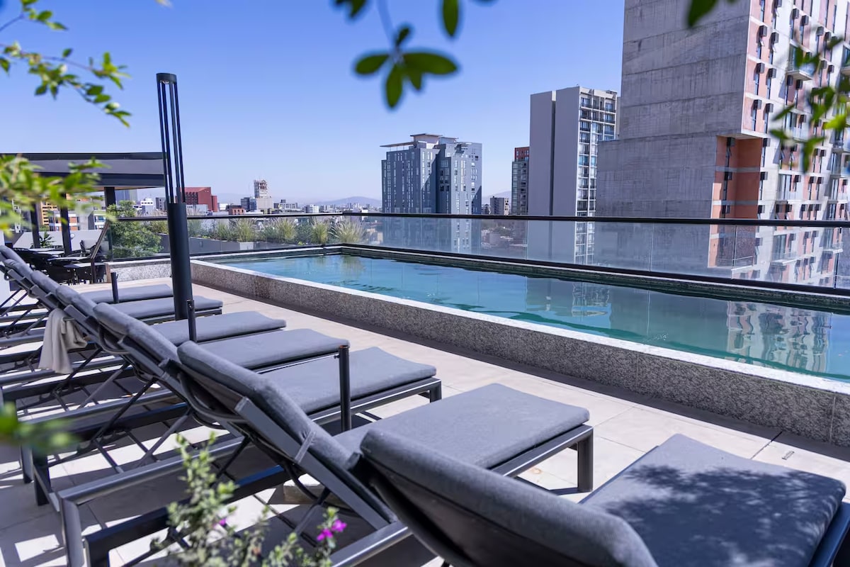 Tearmann nua-aimseartha i gceann de na forbairtí is íocónaí in Guadalajara. Laistigh d'achar siúil ó Plaza Andares, tugann an spás seo cuireadh duit sult a bhaint as an gcathair go socair: cistin lánfheistithe, timpeallachtaí atá deartha chun scíth a ligean agus saoráidí a ghabhann le gach nóiméad, ón linn snámha ina bhfuil jacuzzi go dtí an lochtán fionnuar.