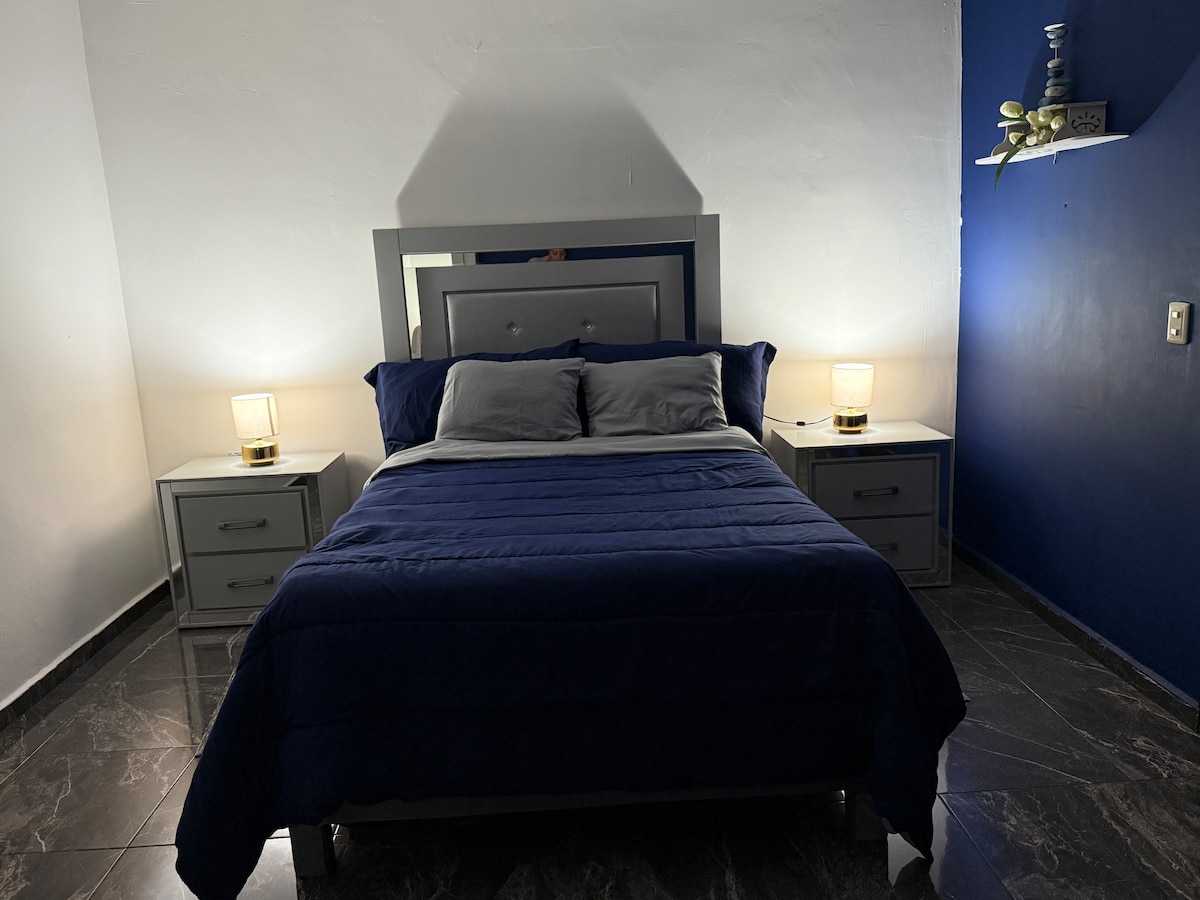 Árasán neamhspleách , príobháideach, thuas staighre, seomra do bheirt i bhforoinn phríobháideach. Athmhúnlaithe le déanaí agus feistithe le gach rud a theastaíonn uait le haghaidh saoire chompordach nó fanacht oibre. Le rochtain rialaithe, garda slándála, agus páirceáil. Tá sé suite go straitéiseach idir Ionad na Cathrach agus Aerfort Idirnáisiúnta Mariano Escobedo. Ag siúl go sroicheann tú Learpholl "Paseo La Fe ".