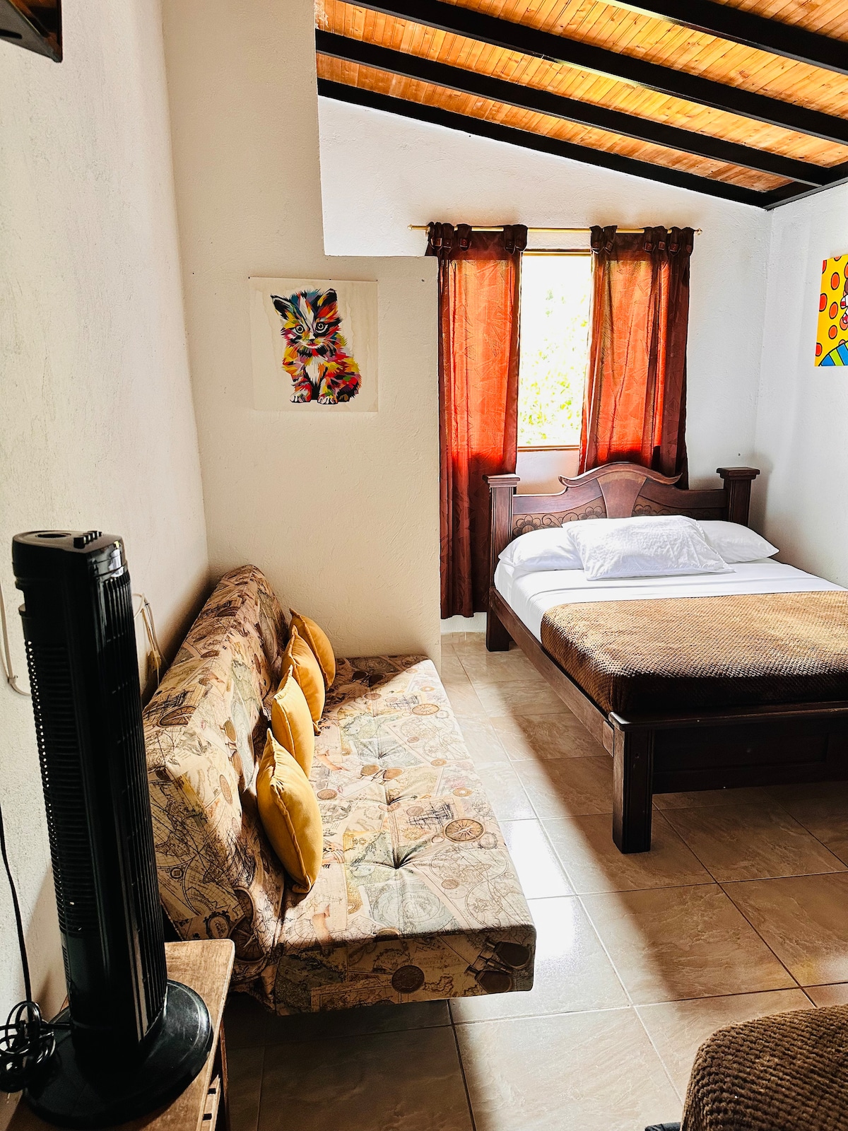 Cábán logála álainn tuathúil, atá suite ar bharr cnoic, le radharc álainn ag luí gréine Guadalupe Santander. Tá sé suite ar shiúlóid 15 nóiméad ó acomhal an phóirse, 500 méadar ó Óstán Terrazas. Is áit iontach é le roinnt le do theaghlach, le do lánúin agus le cairde.