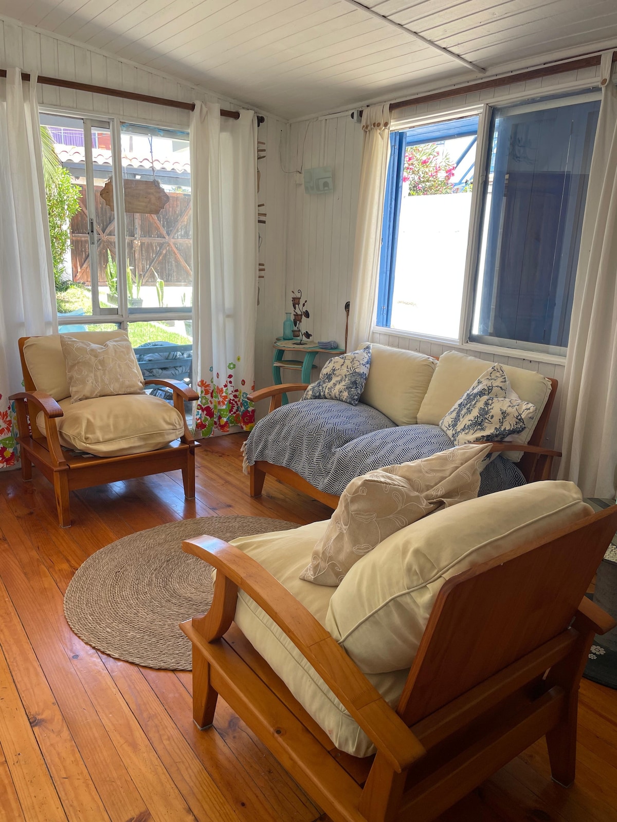 Cábán teolaí trí bhloc ó cheann de na tránna is áille agus is ciúine sa tSile. Le haeráid phribhléideach, atá oiriúnach don fhánaíocht, don rothaíocht ar an trá nó don turasóireacht ar an gcnoc. Suite cúpla bloc ó lár an tsráidbhaile, i gceantar cónaitheach ciúin. Tá an láithreán sábháilte, tá sé dúnta go hiomlán agus tá an carrchlós suite istigh ann. Ceamaraí slándála Labhraímid Béarla.