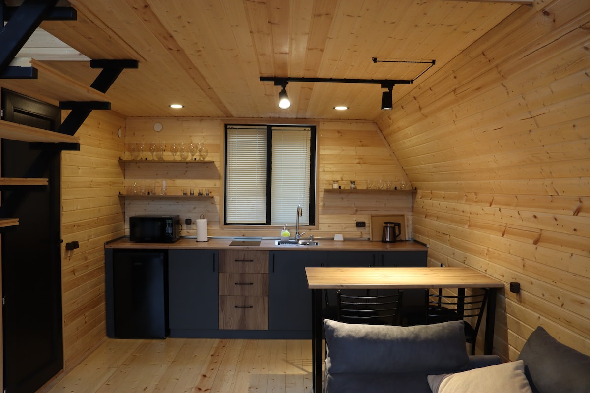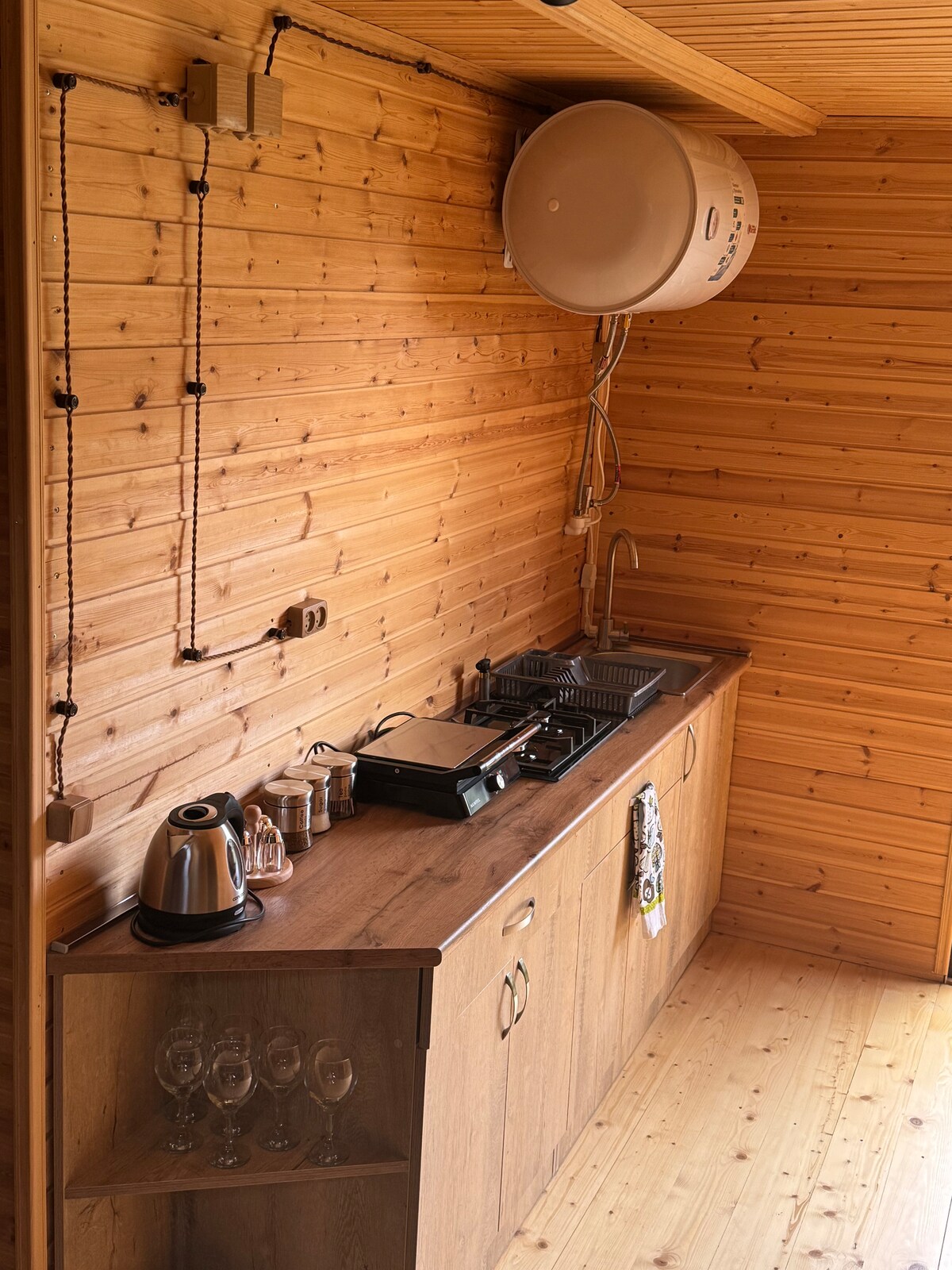 Fáilte go dtí ár dteachíní adhmaid nua atá neadaithe i sléibhte Kazbegi! Bain sult as radhairc iontacha ó chompord do thearmainn phríobháidigh. Feistithe go hiomlán le saoráidí nua - aimseartha lena n - áirítear teilifíseán le síntiús Netflix, micreathonnán, meaisín caife, cuisneoir, sorn ionduchtaithe, agus meaisín níocháin, cuireann ár dteachíní compord agus áisiúlacht ar fáil. Lig do scíth i suaimhneas an dúlra agus tú ag scaradh leis an gcompord a bhaineann le teach atá feistithe go maith.
