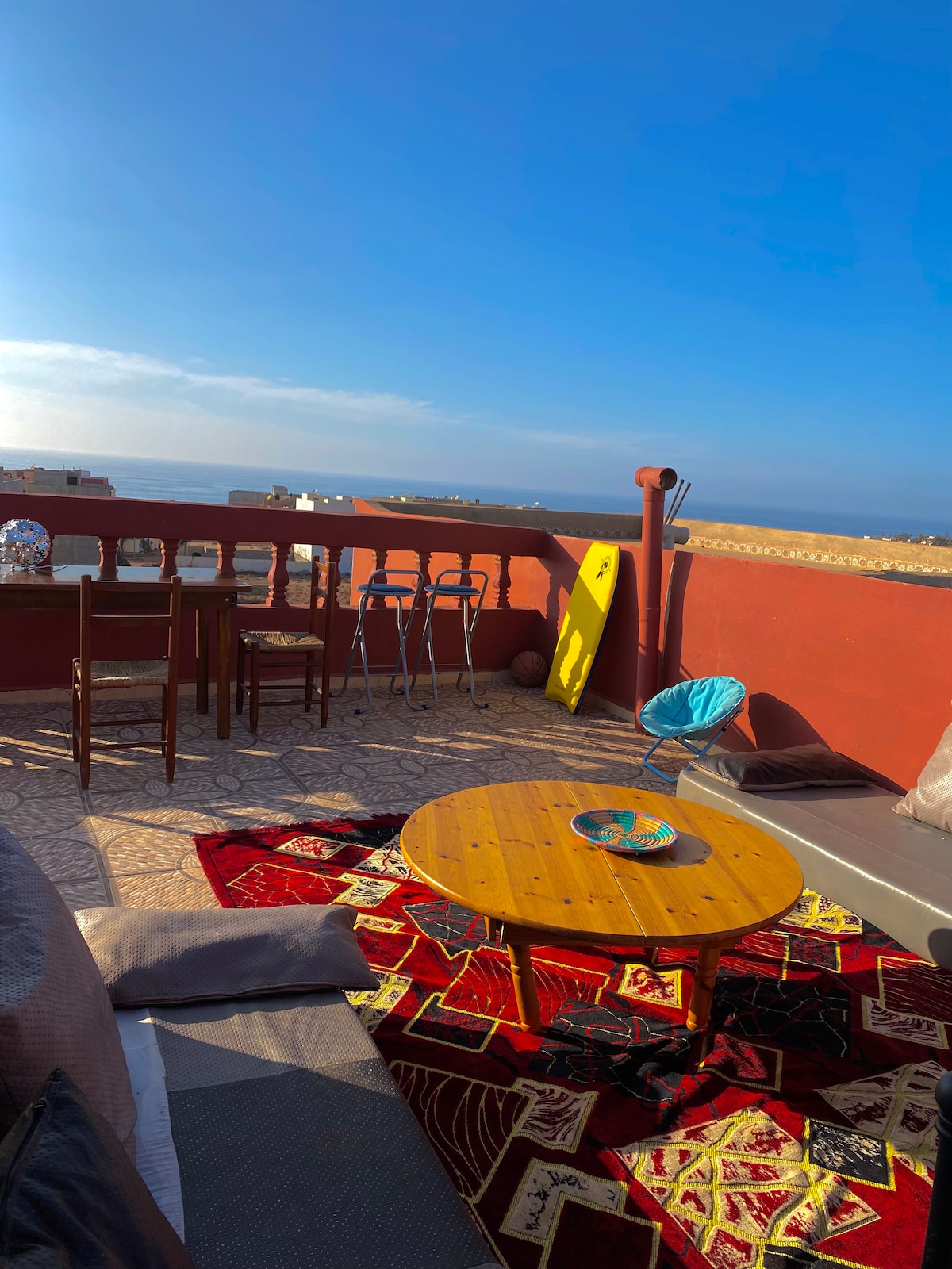 Tar a scíth a ligean agus taitneamh a bhaint as an charm Sidi Ifni. 200m ón trá, ciúin, ár dteach de 150 m2, atá suite sa cheantar stairiúil, tá radhairc lánléargais ar an bhfarraige, ar an gcathair agus ar an sliabh. Eagraithe timpeall ar phaitió, comhcheanglaíonn a ailtireacht traidisiún riad trí nua - aimsearthacht agus compord a thairiscint. Thugamar aire don mhaisiú trí throscán dearaidh, rudaí ealaíne agus ceardaíocht Mharacó a chur le chéile.
