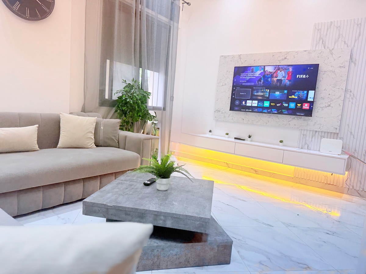 Fáilte chuig ár n - árasán só! Cuireann an ósais uirbeach seo spás fairsing ar fáil le 2 sheomra leapa, teilifíseán Cliste 50 orlach le Netflix le haghaidh oícheanta scannáin dodhearmadta, Wi - Fi tapa chun fanacht ceangailte, agus fiú Playstation 5 do dhaoine a bhfuil dúil acu i gcluichí. Lig do scíth i gcompord iomlán agus déan iniúchadh ar an gcathair ónár bpríomhshuíomh. Déan áirithint anois le haghaidh eispéireas eisceachtúil fanachta.