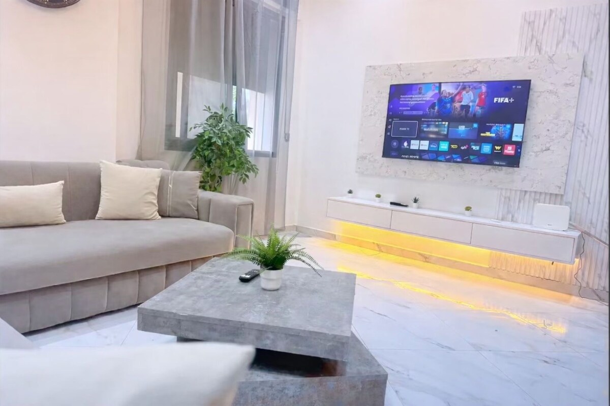 Fáilte go dtí ár n - árasán úrnua dhá sheomra leapa atá suite i gceantar faoi phribhléid in Tangier. ( Enface Royale tulip) Tá an réadmhaoin ardleibhéil seo suite i gceann de na ceantair is mó a bhfuil tóir orthu sa chathair le concierge / slándáil 24 uair an chloig, agus gan ach 2 nóiméad siúil ón stáisiún traenach, ionad siopadóireachta i lár na cathrach, ionad siopadóireachta lár na cathrach agus tránna áille. Cuireann sé idir áisiúlacht agus só ar fáil os comhair do chuain