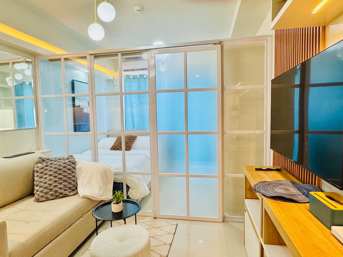 Fáilte go Oasis I Stíl!Aonad spreagtha ag seomra óstáin a thairgeann caitheamh aimsire suaimhneach, compoird agus gan teorainn laistigh den chathair.A 3min walk fr SM City mall.Enjoy the convenience of shopping, dining & fun just steps away from the fuadar City of Love, Iloilo City. Ideal le haghaidh 2 -3pax le leaba lánmhéide & leaba thoilg, cistin lánfheistithe, seomra folctha nua - aimseartha le téitheoir uisce te, 65 orlach Google TV le Netflix,AC & lucht leanúna seastáin, idirlíon ardluais, rochtain ar linn snámha & spás páirceála saor in aisce.