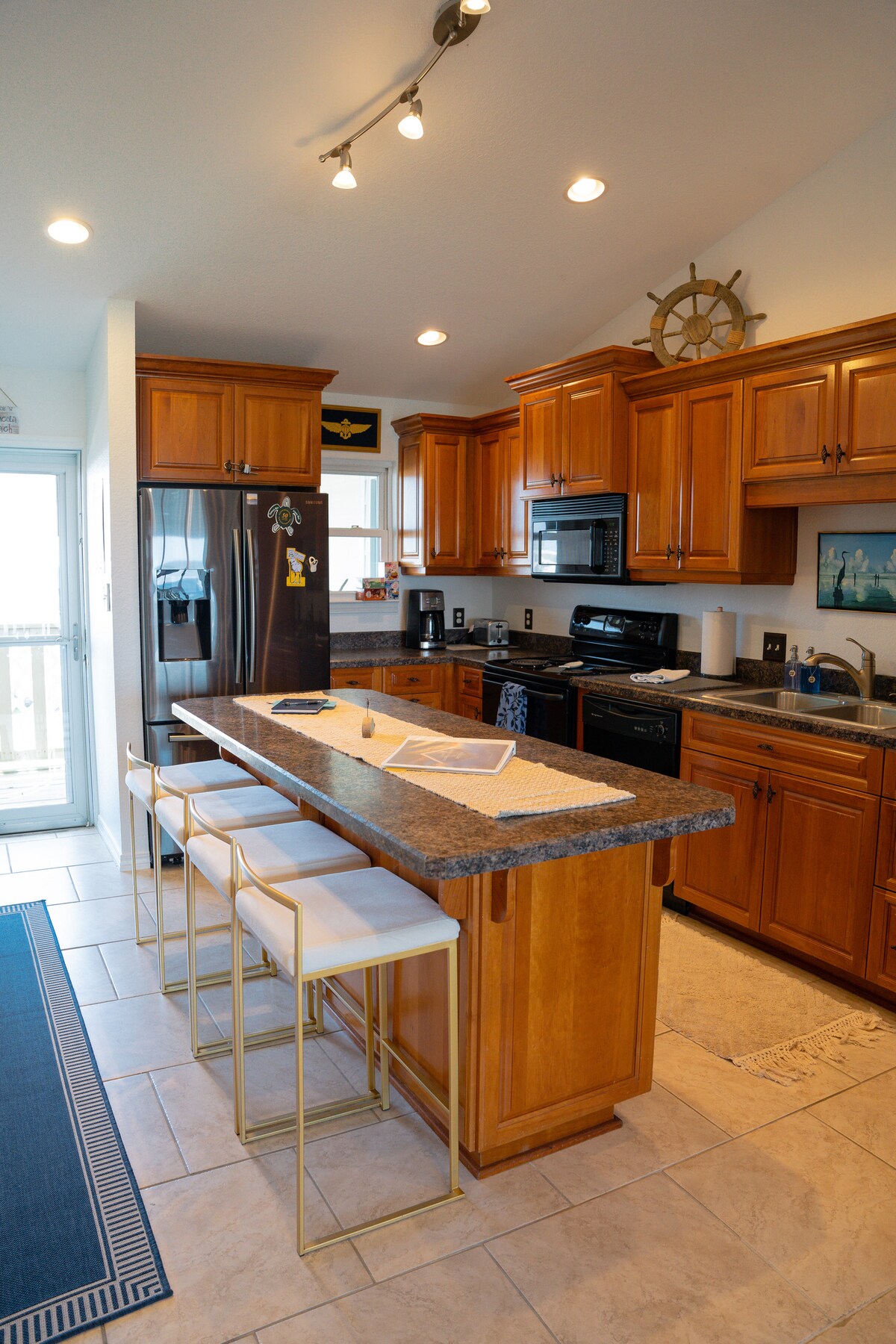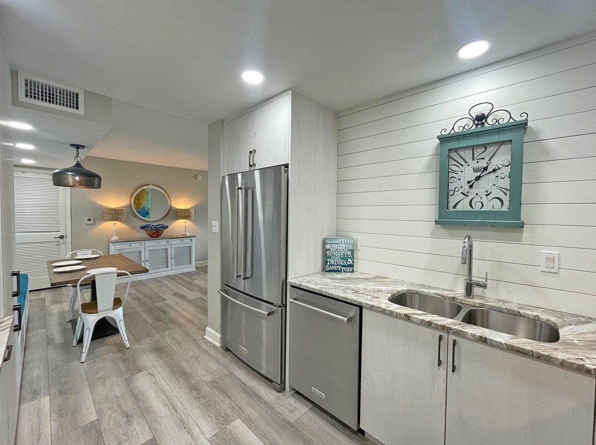 Gach rud san áireamh! Árasán cois uisce a athmhúnlaíodh le déanaí le síleálacha boghtach atá suite ar Little Sabine Bay agus céimeanna ó Mhurascaill Mheiriceá. Bain sult as caife agus manglaim ar bhalcóin iontach ag breathnú amach ar an mBá. Siúl nó téigh ar rothar chuig siopadóireacht, bia, agus Gulfside. Árasán 1 seomra leapa le lochta. Tá oileán 7'ar an gcoincheap oscailte ina gcónaí/cistin. I measc na leapacha tá King i máistir, banríon sa lochta agus leaba thoilg banríona. 1 áit pháirceála clúdaithe. 2 rothar 2 chlár seaschéaslóireachta inséidte san áireamh freisin.